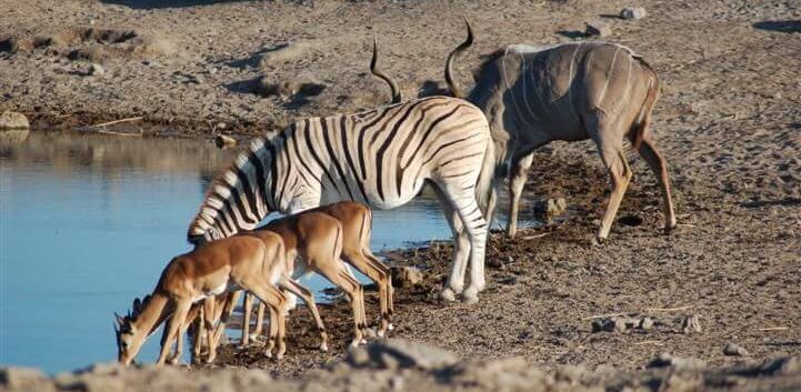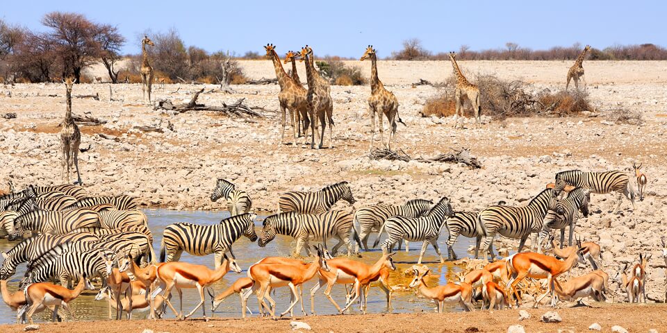 Etosha is wildlife-kijken zoals je het wil: rustig bij een waterhole zitten en wachten wat er verschijnt. Een olifant, leeuw, neushoorn, springbok, en ga zo maar door. Een self-drive safari in Etosha is goed te doen, of kies een guided game drive als je liever wild gaat spotten met een ervaren gids. Plan bij voorkeur een verblijf op twee verschillende campsites of lodges voor variatie tijdens je vakantie naar Namibië.
