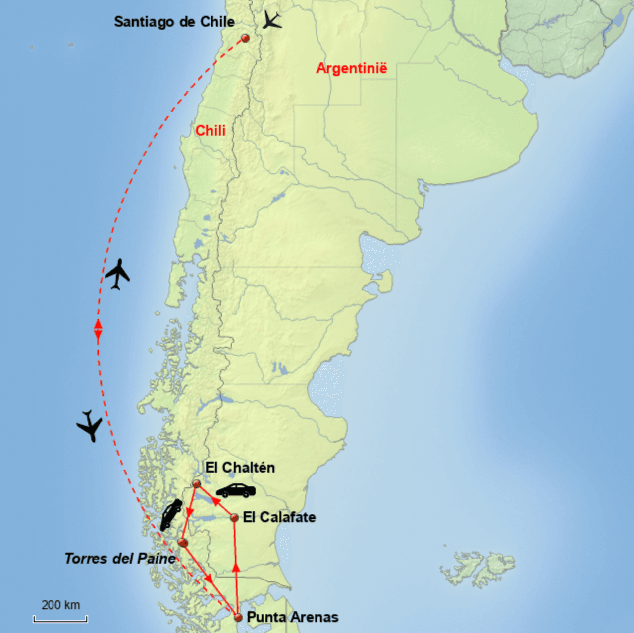Een individuele rondreis door Chili is de ideale combinatie van natuur en cultuur. Zo kom je in de vele musea, die de bruisende hoofdstad Santiago kent, meer te weten over de geschiedenis van het land. Daarnaast telt de stad heerlijke parken waar je tot rust komt en struin je in het oude centrum langs kerken en paleizen uit de koloniale tijd. Vanuit Santiago kun je alle kanten op. Bezoek in het noorden van Chili de droogste plek op aarde, de Atacama-woestijn, met eindeloze zand- en zoutvlaktes en het Volcán Isluga National Park, waar je de mooiste vulkaanlandschappen aanschouwt. Ten zuiden van Santiago ligt het merengebied. In dit bijzondere gebied reis je langs kleine dorpjes, ijzige gletsjers, prachtige fjorden en meren. Met een huurauto ontdek je dit gebied op zijn best. Een van de hoogtepunten van je rondreis ligt in een van de meest indrukwekkende en ongerepte gebieden van Chili en Argentinië, namelijk Patagonië. Nationaal Park Torres del Paine is misschien wel het meest indrukwekkende park van het land. Bewonder de spectaculaire rotsformaties, immense gletsjers en kolkende rivieren met je eigen ogen. Naast deze bezienswaardigheden geniet je onderweg van heerlijke wijnen, de Chileense keuken en de gastvrijheid van de bevolking.