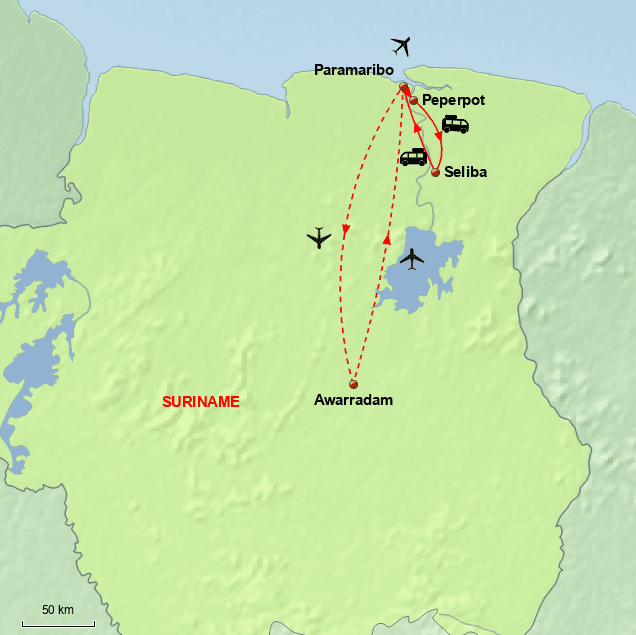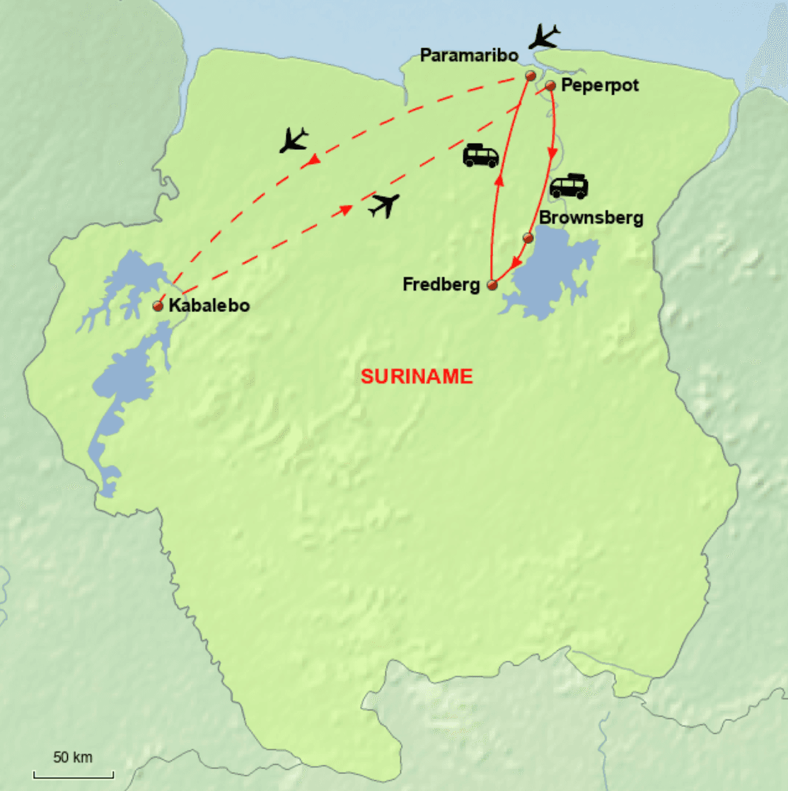 Dankzij onze jarenlange ervaring en sterke lokale contacten is Vámonos Travels dé specialist in individuele rondreizen door Latijns-Amerika, waaronder Suriname. Al onze reizen zijn privéreizen, zodat je met je eigen gezelschap reist en volop vrijheid ervaart. Iedere reis wordt volledig op maat samengesteld – van route tot accommodaties, die je in vrijwel elke plaats zelf kunt kiezen. Of je nu een bestaande reis wilt aanpassen of een unieke route door het veelzijdige Suriname wilt samenstellen, onze reisspecialisten helpen je graag met persoonlijk advies voor een onvergetelijke reiservaring.