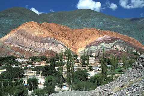 Het woestijndorpje Purmamarca bestaat uit kleine huizen en kleurrijke bergen. In het dorp is er dagelijks een lokale markt te vinden waar je traditionele handwerken en kledingstukken kunt kopen. De belangrijkste trekpleister van Purmamarca zijn de nabijgelegen Cerro de los Siete Colores, oftewel: de berg met zeven kleuren. Deze berg van 2100 meter hoogte bestaat uit 7 verschillende aardlagen, allen met een eigen kleur. Zeker tegen het einde van de dag komen de kleuren goed tot zijn recht!