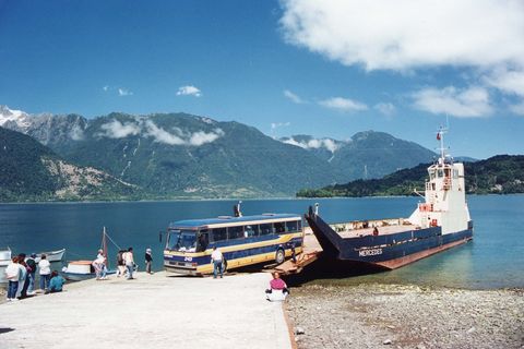 Je neemt de de ferries van Hornopirén naar Leptepú en aansluitend van Fiordo Largo naar Caleta Gonzalo in ongeveer 4 uur.