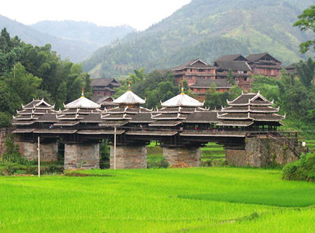 Dag 4: Rijdend langs mooie rijstterrassen kom je aan in Sanjiang County. Je bezoekt de Wind & Rain bridge.