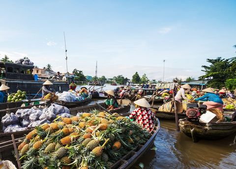 De machtige Mekong rivier en het netwerk van zijriviertjes (de delta) strekt zich uit over het zuiden van Vietnam. Hier vind je veel rijstbouw, kleine dorpjes, prachtige natuur en rust. Veel van het leven speelt zich af op en rond het water. Er zijn zelfs complete markten op de rivier (floating market). Can Tho is de belangrijkste stad in de Mekong Delta. Vanuit Can Tho kan je per boot één van de vele drijvende markten in de buurt verkennen. Op deze levendige markten worden vele varianten aan bizarre tropische vruchten en andere lokale producten verkocht. Het is een leuke manier om te zien hoe het leven zich aan de waterkant afspeelt.
